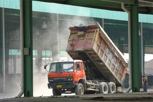 一進新市場,迎面是一個占地四十畝的龐大停車場,停著的幾輛九米多長大卡車在這里有幾分“迷你玩具”味道。穿過停車場,進到新市場,遠遠就望見的三個綠色大棚如同三朵碩大的“綠牡丹”綻放在半空之中,十分壯觀,背后還有一個橫向的大棚。無錫朝陽集團有限公司總經理楊興德介紹:老市場還存在著一定量的露天交易,如今這里三個鋼結構標準化大棚每個1.1萬平方米,再加一個橫向大棚總計4萬平方米的交易面積,可供一萬多人同時進行交易,露天交易不再存在了。交易市場有一個主通道,四個副通道,形成車輛內部環形圈,九米多長的卡車對開進來,中間依然有寬敞的過道可供交易之用。
