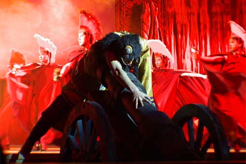 昨晚,劇場(chǎng)上不時(shí)傳來(lái)熱烈的掌聲,朝陽(yáng)職工為精彩緊張的情節(jié)和演員們精湛的舞藝鼓掌,也為精妙的舞美而贊嘆。當(dāng)英國(guó)侵略者的大炮突然從臺(tái)前升起,劇場(chǎng)上一片驚呼,給人以強(qiáng)烈的視覺(jué)沖擊。