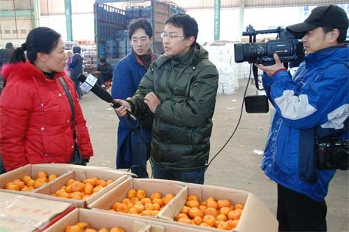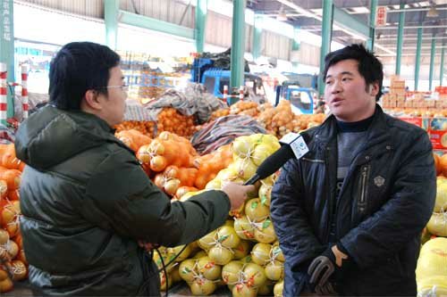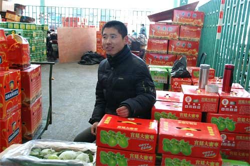 路面稍有冰凍,卻沒(méi)有太多的寒意。市場(chǎng)另一端的水果區(qū),交易漸入高峰,兩位電視臺(tái)記者,算是起了個(gè)早,一路采訪,收獲頗多。做青棗的小伙,看鄰座小帥哥巧舌搶鏡,煞是不服,要求來(lái)張相片上網(wǎng)也好。