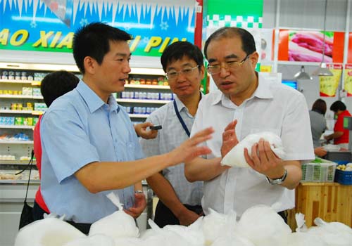 9月9日上午,無錫市常務副市長徐劼一行,專程視察了天惠超市豐涵店,天惠超市總經理羅志堅向市領導匯報了有關實施便民惠民工程、積極提供平價蔬菜的工作。