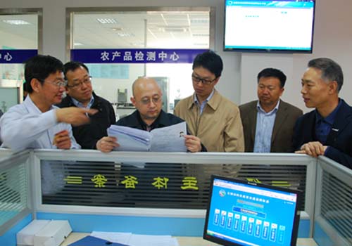 4月11日,監察部駐商務部監察局單記京局長、商務部市場秩序司李振中副司長一行,在無錫調研肉類蔬菜流通追溯體系建設情況。