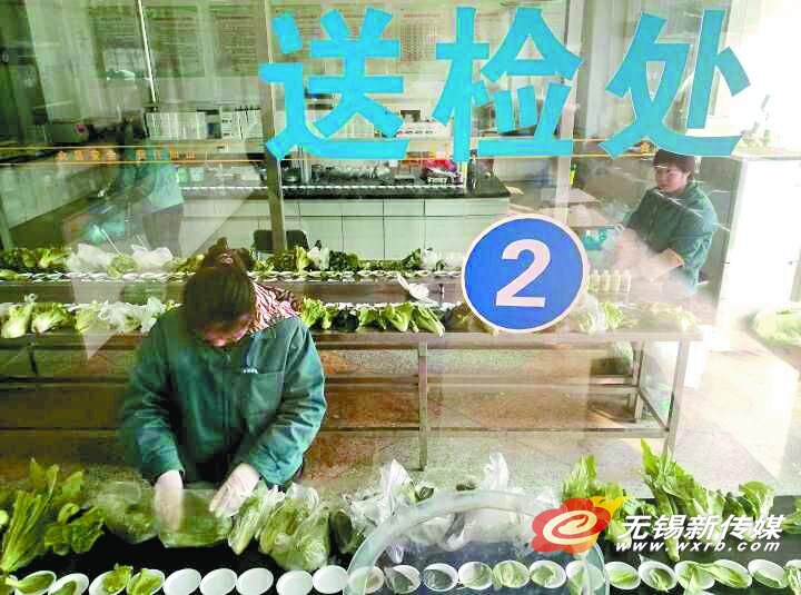 24日,我市朝陽蔬菜批發(fā)市場的檢驗人員正對所有即將流入市場的蔬菜進(jìn)行農(nóng)藥及重金屬是否超標(biāo)檢測,確保市民菜籃子的安全。