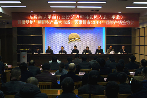 12月1日上午,無錫蔬菜果品行業(yè)協(xié)會(huì)2017年會(huì)員大會(huì)(年會(huì))、蔬果基地與朝陽農(nóng)產(chǎn)品大市場、天惠超市2018年蔬果產(chǎn)銷簽約會(huì)在朝陽農(nóng)產(chǎn)品大市場隆重召開。領(lǐng)導(dǎo)、嘉賓與蔬菜果品行業(yè)協(xié)會(huì)人員、蔬果基地代表共200余人出席會(huì)議。無錫日?qǐng)?bào)、江南晚報(bào)、無錫商報(bào)、廣電新聞中心、經(jīng)濟(jì)頻率、江南之聲等媒體記者應(yīng)邀到會(huì)。 在蔬菜果品行業(yè)協(xié)會(huì)會(huì)員大會(huì)上,無錫蔬菜果品行業(yè)協(xié)會(huì)會(huì)長張君君作了《無錫蔬菜果品行業(yè)協(xié)會(huì)2017年工作總結(jié)》、《無錫蔬菜果品行業(yè)協(xié)會(huì)2018年主要工作設(shè)想》的報(bào)告;周介華副會(huì)長作了《無錫蔬菜果品行業(yè)協(xié)會(huì)2017年財(cái)務(wù)情況報(bào)告》;會(huì)議表彰了2016年——2017年協(xié)會(huì)工作積極分子。 在隨后舉行的協(xié)會(huì)四屆理事會(huì)上,張君君會(huì)長提出了因工作原因辭去會(huì)長職務(wù)的請(qǐng)求。全體理事對(duì)張君君會(huì)長任職期間的卓越工作給予了高度評(píng)價(jià)。會(huì)議表決通過了張君君同志的辭職請(qǐng)求,一致同意聘請(qǐng)張君君同志擔(dān)任無錫蔬菜果品行業(yè)協(xié)會(huì)名譽(yù)會(huì)長。會(huì)議決定:楊興德同志任無錫蔬菜果品行業(yè)協(xié)會(huì)理事、常務(wù)理事、會(huì)長。 在緊接著舉行的蔬果基地與朝陽農(nóng)產(chǎn)品大市場、天惠超市2018年蔬果產(chǎn)銷簽約會(huì)上,基地與朝陽農(nóng)產(chǎn)品大市場簽訂了蔬果基地52504畝(蔬菜48350畝、水果4154畝)、蔬果商品量81970噸(蔬菜75300噸、水果6670噸)的產(chǎn)銷合作協(xié)議。蔬果基地與天惠超市合作多年,在這次簽約會(huì)上,共簽蔬菜基地57個(gè),同比增加2個(gè),種植面積850畝,同比增加10%;簽約數(shù)量6200噸,同比增加4%。 市工商聯(lián)副主席王海寶出席會(huì)議并作重要講話。市民政局社團(tuán)組織管理處處長袁衛(wèi)東、市工商聯(lián)會(huì)員處副處長劉小兵亦應(yīng)邀出席了會(huì)議。