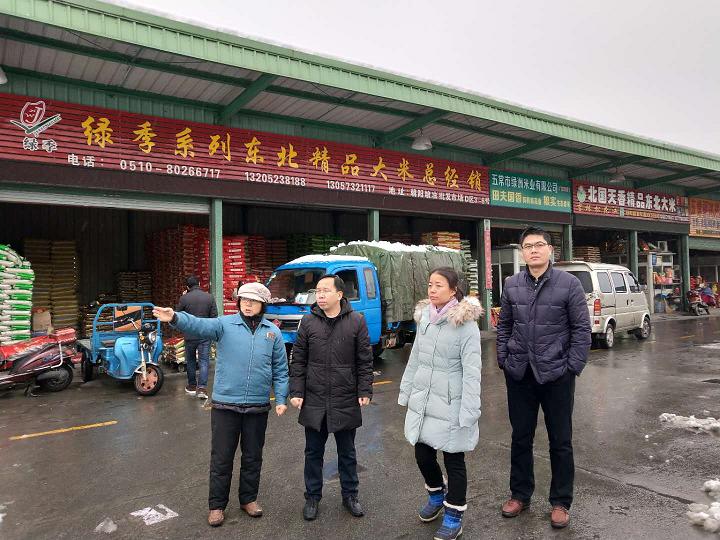 暴雪天氣暫告段落,1月28日中午,無錫糧食局副局長吳莉萍帶領調控處等下屬處室主要負責人一行來到朝陽糧油市場,了解春節前期市場糧油供應情況。