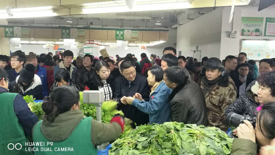 2月13日臘月廿八上午10時許,距離春節還有不到三天時間,梁溪區區長秦詠薪帶領區各部門領導,到朝陽農貿市場檢查節前安全工作。朝陽集團董事長張君君、總經理楊興德、副總經理張慶卿接待檢查團一行。