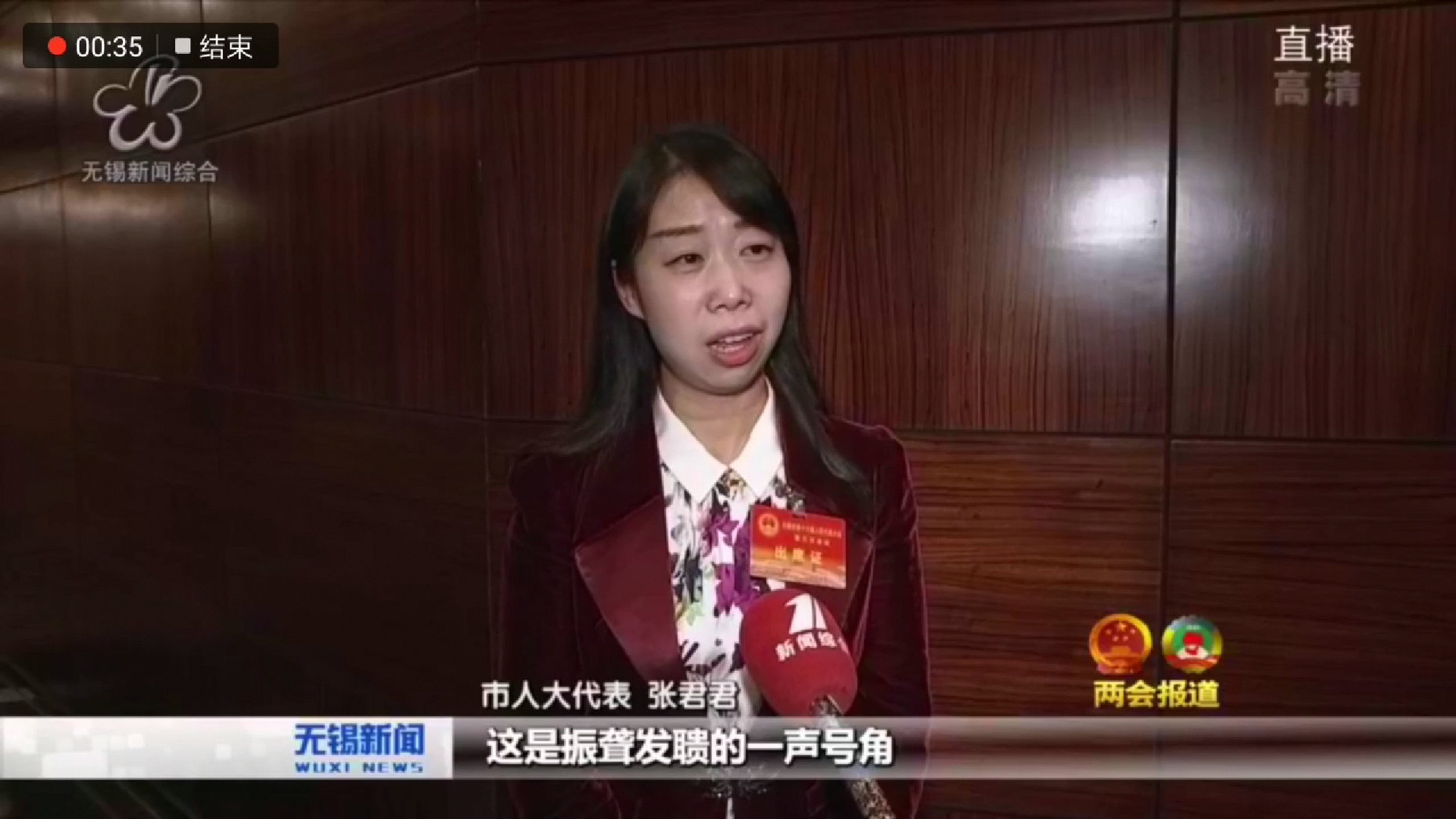 昨天是無錫市十六屆三次人代會召開的第一天,市人大代表、朝陽集團董事長張君君在會議期間,分別接受了《無錫新聞》、《今晚60分》等電視臺欄目記者的采訪,熱議李小敏書記講話和《政府工作報告》。