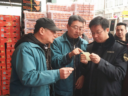 胡局一行先后來(lái)到監(jiān)控中心、蔬菜備案中心、檢測(cè)中心、結(jié)算中心,聽(tīng)取了朱總就大市場(chǎng)在溯源體系建設(shè)、蔬菜準(zhǔn)入、農(nóng)產(chǎn)品檢測(cè)、食品安全維護(hù)等工作的匯報(bào)。隨后他們又來(lái)到蔬菜、水果、家禽市場(chǎng),現(xiàn)場(chǎng)檢查了農(nóng)產(chǎn)品在市場(chǎng)流通的各個(gè)環(huán)節(jié),了解了索證索票、消毒消殺等工作的執(zhí)行落實(shí)情況,對(duì)市場(chǎng)在食品安全方面所做的工作表示認(rèn)可,并希望市場(chǎng)在春節(jié)期間進(jìn)一步加強(qiáng)食品安全工作,確保消費(fèi)者買得放心、吃得放心。