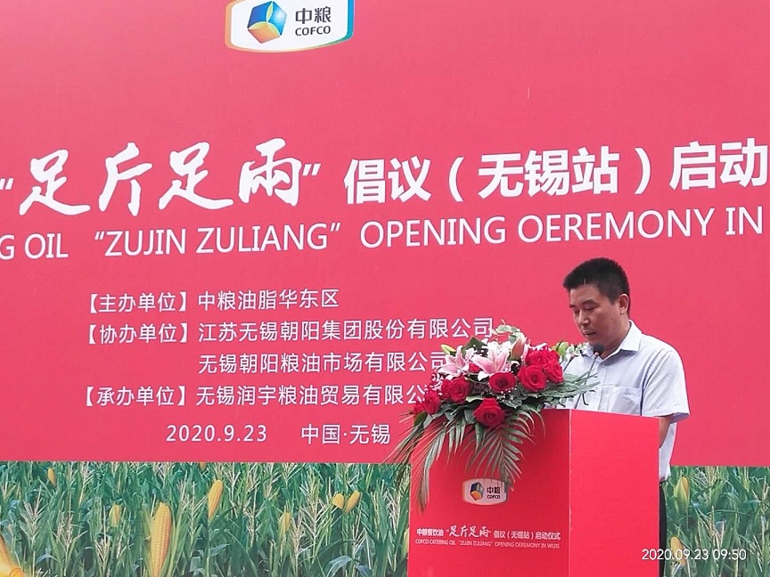 9月23日上午,中糧餐飲油“足斤足兩”倡議(無(wú)錫站)啟動(dòng)儀式在無(wú)錫朝陽(yáng)糧油市場(chǎng)隆重舉行。 活動(dòng)儀式上,朝陽(yáng)糧油市場(chǎng)攜手中糧油脂華東區(qū)共同發(fā)出倡導(dǎo):“響應(yīng)國(guó)家號(hào)召,厲行勤儉節(jié)約,倡導(dǎo)誠(chéng)實(shí)守信;加強(qiáng)行業(yè)自律,推進(jìn)糧食安全信用體系建設(shè),踐行企業(yè)責(zé)任;我們倡議糧油經(jīng)營(yíng)戶(hù)要始終堅(jiān)持誠(chéng)信經(jīng)營(yíng),重合同,守信用,堅(jiān)持銷(xiāo)售合法合規(guī)、足斤足兩的糧油商品。 朝陽(yáng)糧油市場(chǎng)總經(jīng)理徐軍代表市場(chǎng)做了主旨發(fā)言,無(wú)錫朝陽(yáng)糧油市場(chǎng)將一如既往的秉承食品安全監(jiān)督的職責(zé),繼續(xù)履行糧油安全保供的社會(huì)責(zé)任,全力保障無(wú)錫糧油供應(yīng)安全,全力服務(wù)經(jīng)營(yíng)戶(hù)做大、做強(qiáng),努力打造一個(gè)市民滿(mǎn)意、經(jīng)營(yíng)戶(hù)滿(mǎn)意的文明規(guī)范的糧油交易品牌市場(chǎng)。(楊敏)