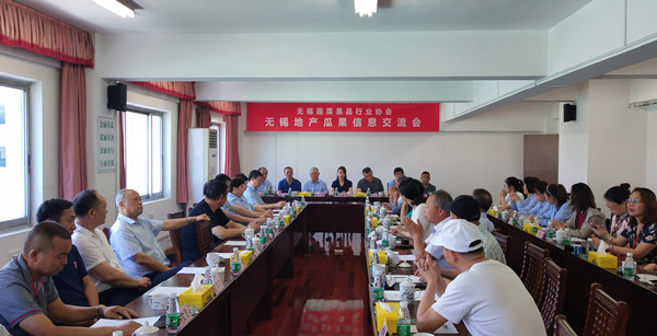 由無錫蔬菜果品行業協會舉辦的2021年無錫地產瓜果信息交流會于6月22日上午,在錫澄大廈五樓召開。來自無錫及周邊地區各縣、區果品生產基地的領導、代表、朝陽集團、朝陽批發市場、天惠超市有關領導共40余人參加了會議。