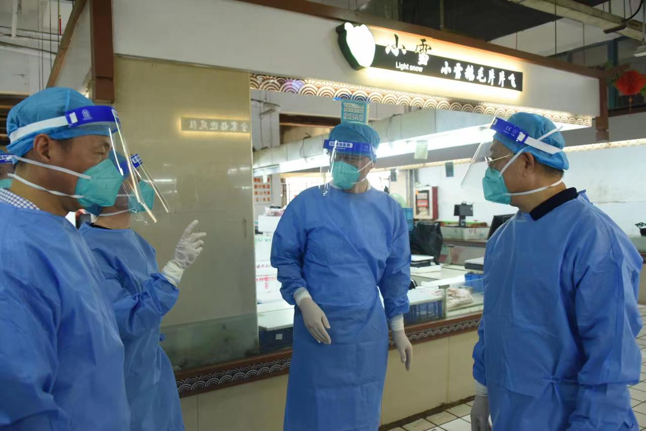 7月10日上午,無(wú)錫市委常委、統(tǒng)戰(zhàn)部部長(zhǎng)周常青帶隊(duì),到朝陽(yáng)農(nóng)貿(mào)市場(chǎng)督查市場(chǎng)防疫消殺工作進(jìn)展情況。梁溪區(qū)副區(qū)長(zhǎng)周曉紅、區(qū)防疫指揮部和清名橋街道有關(guān)領(lǐng)導(dǎo)、朝陽(yáng)集團(tuán)總經(jīng)理?xiàng)钆d德等陪同檢查。 周常委身著防護(hù)服,親自進(jìn)入到朝陽(yáng)農(nóng)貿(mào)市場(chǎng)一樓、二樓,仔細(xì)查看各區(qū)域環(huán)境衛(wèi)生和商品物品情況。在集團(tuán)三樓會(huì)議室,周常委聽(tīng)取了各部門(mén)近期的工作匯報(bào),并不時(shí)提問(wèn)和交流。最后他強(qiáng)調(diào)了幾點(diǎn):一是入戶消毒要更細(xì)化更精準(zhǔn)。二是要加強(qiáng)巡查督查。三是農(nóng)貿(mào)市場(chǎng)消殺要徹底。要加快消殺進(jìn)度,消殺后要做深度清潔,并做好滅四害工作。集團(tuán)總經(jīng)理?xiàng)羁偙硎荆?yáng)農(nóng)貿(mào)市場(chǎng)將嚴(yán)格遵照上級(jí)要求,做好市場(chǎng)方方面面的消殺工作,共克時(shí)殲。 |