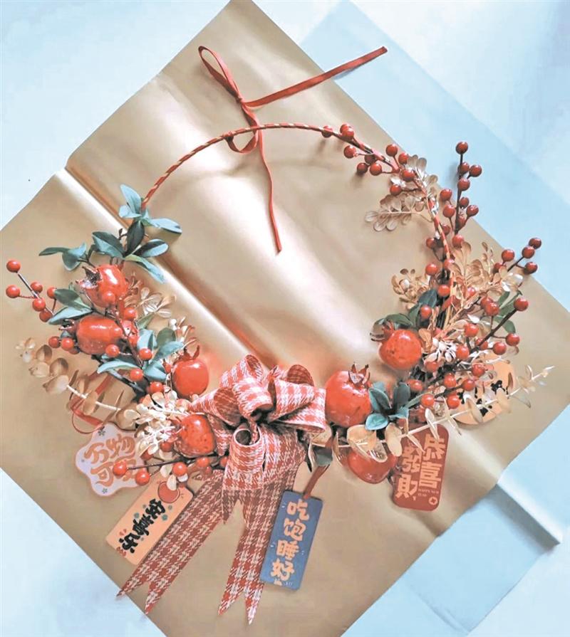 還有“進階版”詳細教程:加入五代同堂果、石榴果、仿真柿子、桔梗制作的小掃把;用流蘇穗穗、玩偶掛件、卡片等做成一個精致的門掛,寓意著新的一年平安好運;將冬青和尤加利葉做成一個小巧的收納盒,里面放置香橙片,寓意著心想事成;收納盒做大一點,還可以放紙巾、遙控器、鑰匙等物品……自己動手,根據個人喜好增減裝飾物,看膩了的年宵花“變廢為寶”,也是一大樂趣呢。 (晚報記者 吳雨琪/文、攝) |