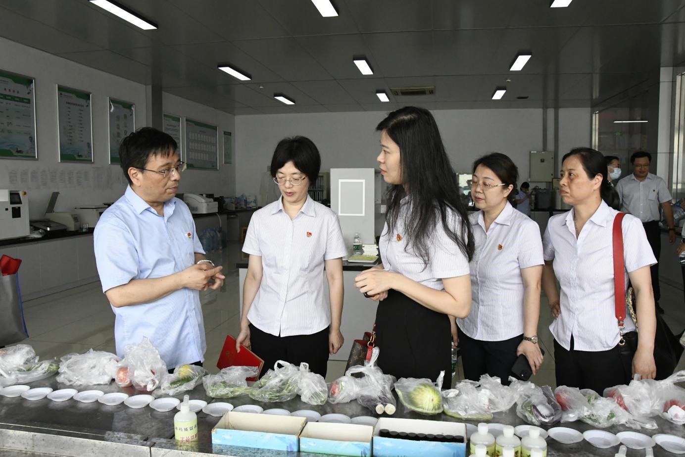 黨員同志們首先參觀了朝陽農產品大市場各板塊,包括朝陽陳列館、信息中心、檢測中心、結算中心、蔬菜、水果兩大市場、冷庫及糧油市場等都進行實地考察,并進行了合影留念。錢書記向大家詳細介紹了市場的運營管理、建設發展、全程電子化交易模式以及信息化建設等方面情況。