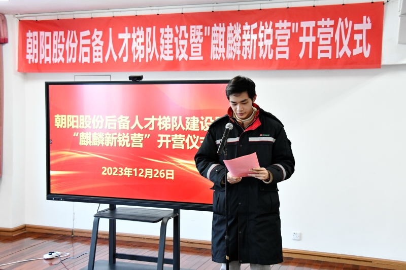12月26日下午,朝陽股份后備人才梯隊建設暨“麒麟新銳營”開營儀式在錫澄大廈5樓隆重舉行。“麒麟新銳營”21位營員、朝陽股份班子成員參加儀式,集團董事長張慶卿先生受邀參加本次活動并發表重要講話。朝陽股份總經理朱健祥主持了本次儀式。