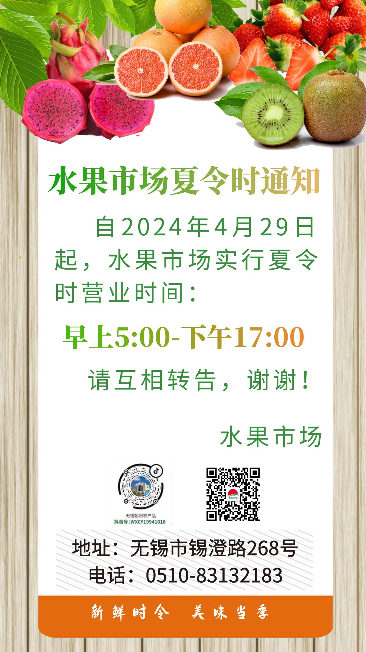 朝陽股份水果市場營業(yè)時(shí)間調(diào)整通知