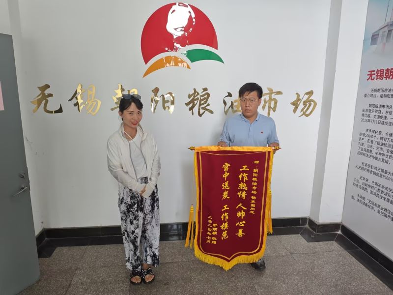 “手機(jī)雖然不是什么貴重物品,但是手機(jī)上的信息對(duì)我來(lái)說(shuō)很重要,如果找不到的話,會(huì)給我的工作和生活帶來(lái)很多不便……”。近日,那女士將印有“工作熱情 人帥心善 雪中送炭 工作模范”的錦旗送到朝陽(yáng)集團(tuán)北區(qū)員工楊東圓手中,以表謝意。 7月15日下午,那麗穎女士在北區(qū)冷庫(kù)東廣場(chǎng)不慎遺失一部手機(jī),向區(qū)域管理員楊東圓求助尋找。楊東圓詢問(wèn)遺失細(xì)節(jié)后,聯(lián)系調(diào)取監(jiān)控回放鎖定手機(jī)去向,并幫助尋回手機(jī),歸還給那女士。 7月25日,那女士再次來(lái)到北區(qū),手捧著一面鮮艷的錦旗,當(dāng)面贈(zèng)予楊東圓,并再次表示感謝!
