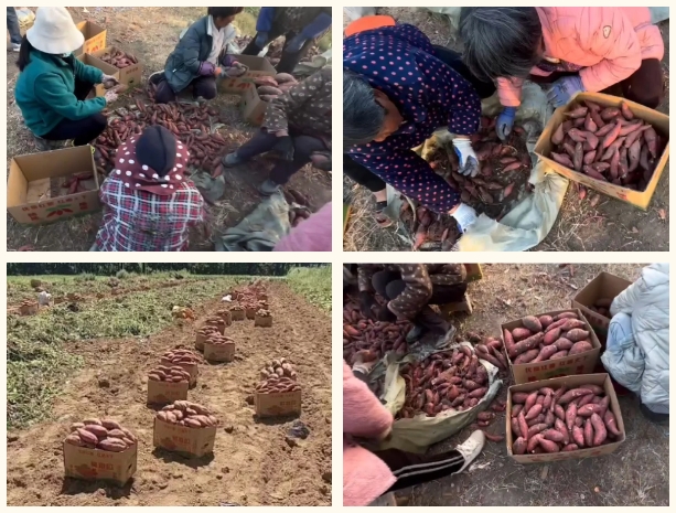 眼下正值山芋成熟的季節,各個產區都迎來了大豐收,走進安徽山芋產地,可以看到農戶們趁著晴好天氣采收山芋,鄉村田野間處處都是忙碌的身影,一派喜人的豐收景象,一壟壟山芋翻滾而出,一個個形狀勻稱,成堆遍布在田間地頭,農田里一幅農事忙、農業興的喜人景象。據了解,安徽地區土地含有充足的深層地下水,山芋可吸收到的豐富礦物質與微量元素,是山芋種植的“風水寶地”,出產的山芋入口甘甜、肉質細嫩、松棉無筋,頗受消費者青睞。