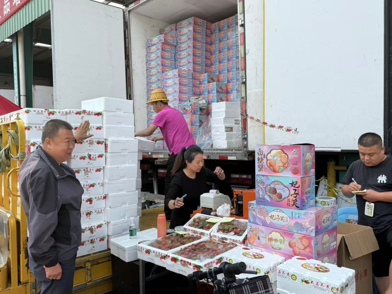 近日,朝陽水果市場端午促銷活動進(jìn)行地如火如荼,水果市場中央大道兩側(cè)荔枝區(qū)也相當(dāng)“鬧猛”,隨著廣東、海南等主產(chǎn)區(qū)荔枝大量上市,整車整柜的荔枝持續(xù)到貨,車載銷售的荔枝并車齊驅(qū),車擠車,人擠人,爭相競品這一口初夏甜蜜。