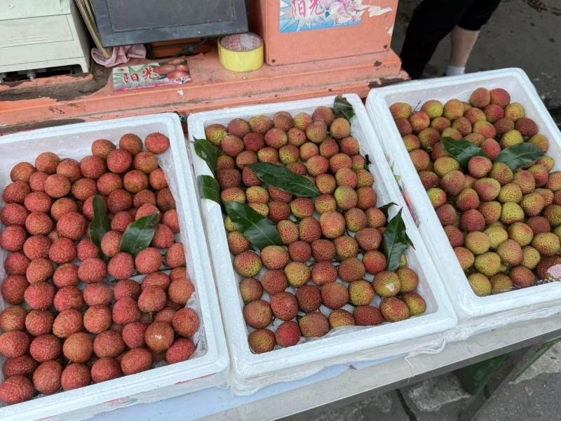 近三日,在場整車?yán)笾p峰時期同時到貨38車,個別客商當(dāng)日到貨5車、在途2車,荔枝整體交易量環(huán)比上周上升一成多,價格持續(xù)“跳水”,目前妃子笑荔枝單價9.8元/斤,環(huán)比上周下降23.4%;白糖罌荔枝單價11.4元/斤,環(huán)比上周下降31.4%,市民翹首以盼的“荔枝自由”觸手可及。