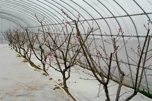 在陽山桃農協會會長周九興、高級農藝師趙老師的陪同下,楊總經理一行參觀了溫室大棚試驗早桃。大棚里的桃花已是一片妖嬈不讓梅。