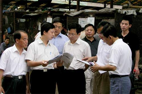代表團首先聽取了朝陽集團總經理楊興德的介紹,楊總經理著重介紹了朝陽家禽市場防控禽流感的具體措施及朝陽蔬菜農藥殘留檢測的工作情況。隨后,代表團分別到朝陽家禽市場和蔬菜批發市場實地檢查工作。